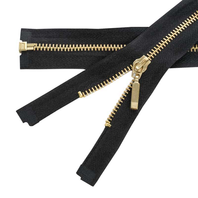 Sárgaréz fogazatú nyitható cipzár. 3 mm széles fém fogazattal rendelkezik, erős és tartós típus. A fém cipzárkocsi nagyon dekoratív (O), és autolock funkcióval van ellátva, így nem tud kinyílni a cipzár véletlenül. A hordozó textilszalag szélessége 3 cm. Alkalmas például ruházati cikkek, kabátok, dzsekik, pulóverek, blézerek készítésénél és javításánál.
