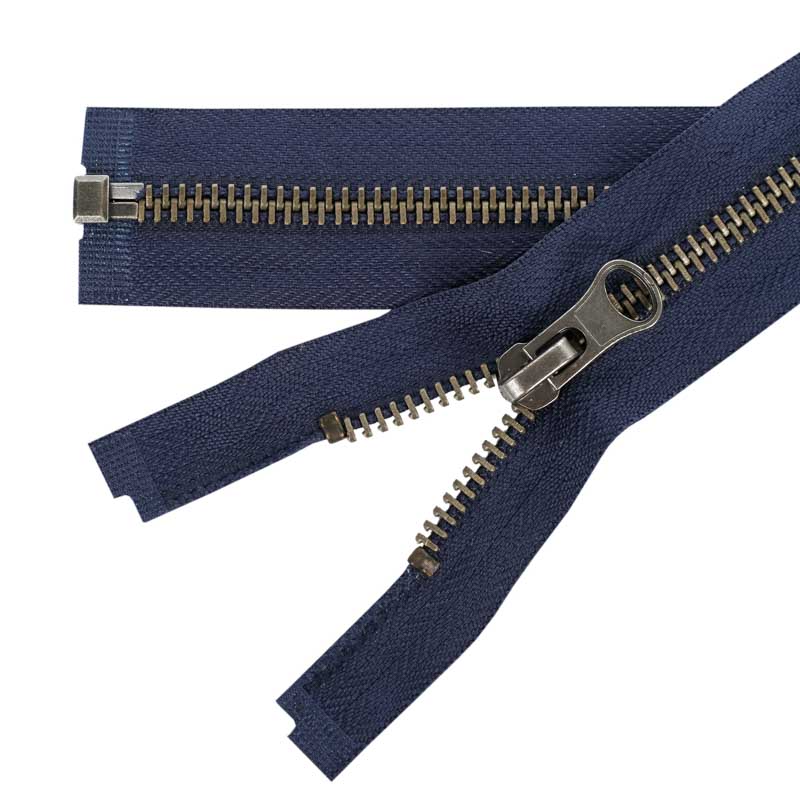 Antik ezüst színű fogazattal rendelkező 60 cm nyitható cipzár. 5 mm széles fém fogazattal rendelkezik, esztétikus és tartós típus. A hordozó textilszalag szélessége 3,5 cm. Alkalmas például ruházati cikkek, kabátok, dzsekik, pulóverek, munkaruházat készítésénél és javításánál.