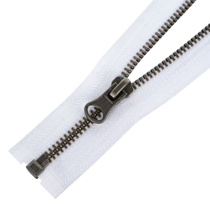 Antik ezüst színű fogazattal rendelkező 75 cm nyitható cipzár. 5 mm széles fém fogazattal rendelkezik, esztétikus és tartós típus. A hordozó textilszalag szélessége 3,5 cm. Alkalmas például ruházati cikkek, kabátok, dzsekik, pulóverek, munkaruházat készítésénél és javításánál.
