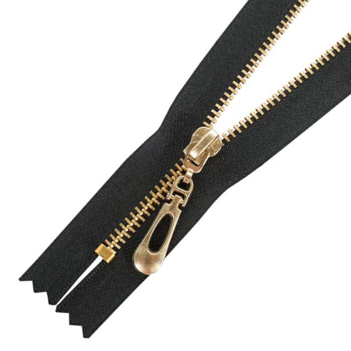 Zárt, más néven nem bontható cipzár. 3 mm széles sárgaréz fogazattal rendelkezik, erős és tartós típus. A fém cipzárkocsi nagyon dekoratív, és autolock funkcióval van ellátva, így nem tud kinyílni a cipzár véletlenül. A hordozó textilszalag szélessége 3 cm. Alkalmas például ruházati cikkek, kabátok, dzsekik, pulóverek, blézerek készítésénél és javításánál.