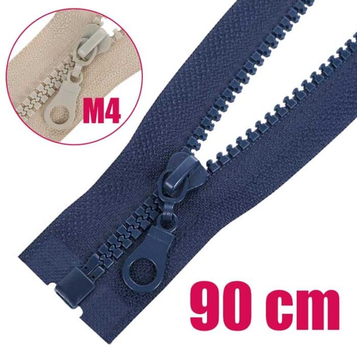 Öntött műanyag fogazattal rendelkező bontható (nyitható) cipzár. Ezt a típusú cipzárt hívják cápafogú, vagy farkas fogú cipzárnak is. A fogazat szélessége 5 mm, a cipzárszalag teljes szélessége 3,2 cm. A fogazat színe megegyezik a textilszalag színével, a cipzárkocsi kör formájú (M4).