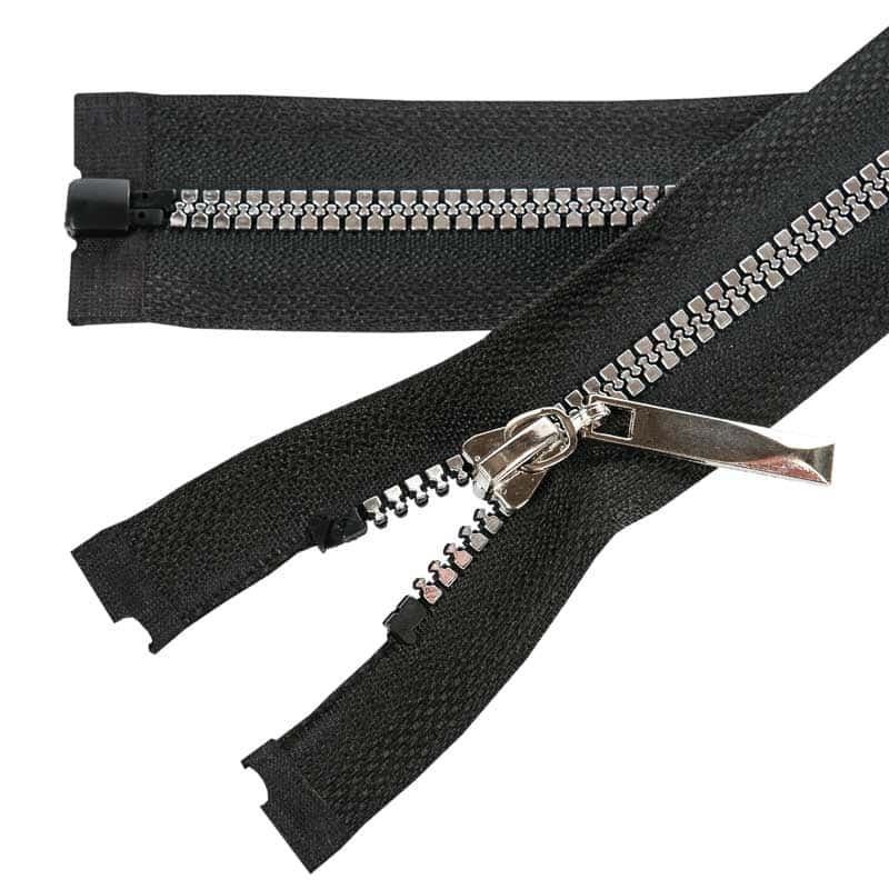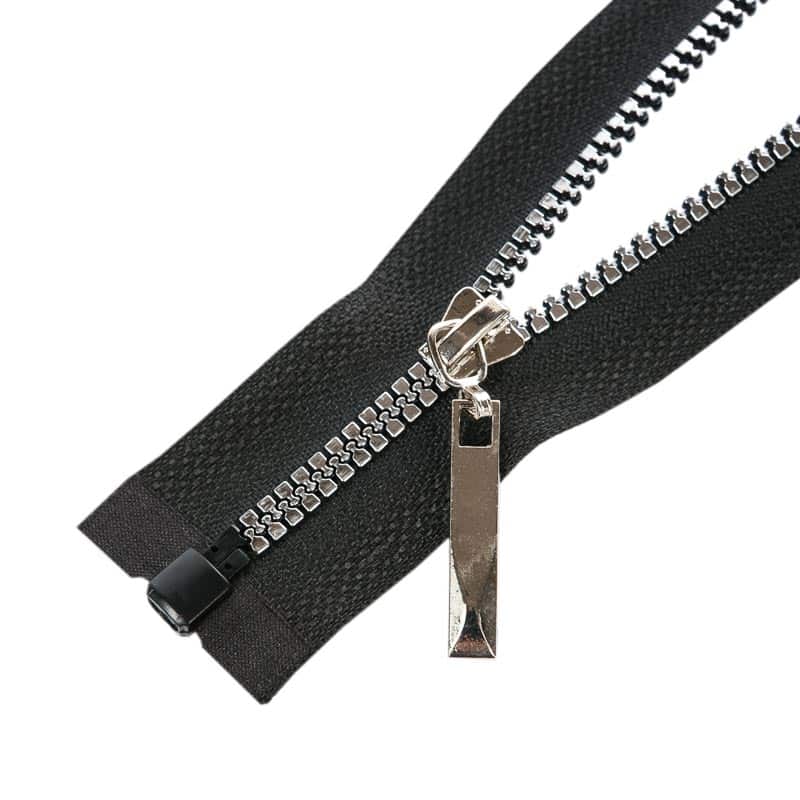 Nagyon esztétikus, ezüst színű polírozott műanyag fogazattal rendelkező cipzár. A különleges fogazat 3 mm széles, a hordozószalag teljes szélessége 3 cm. Attraktív cipzár, így a legnagyobb esztétikai elvárásoknak is megfelel. A cipzárszalag színe fekete (332). Nyitható, vagy más néven bontható kivitel, alkalmazható például pulóver, dzseki, kabát, blézer készítésénél.