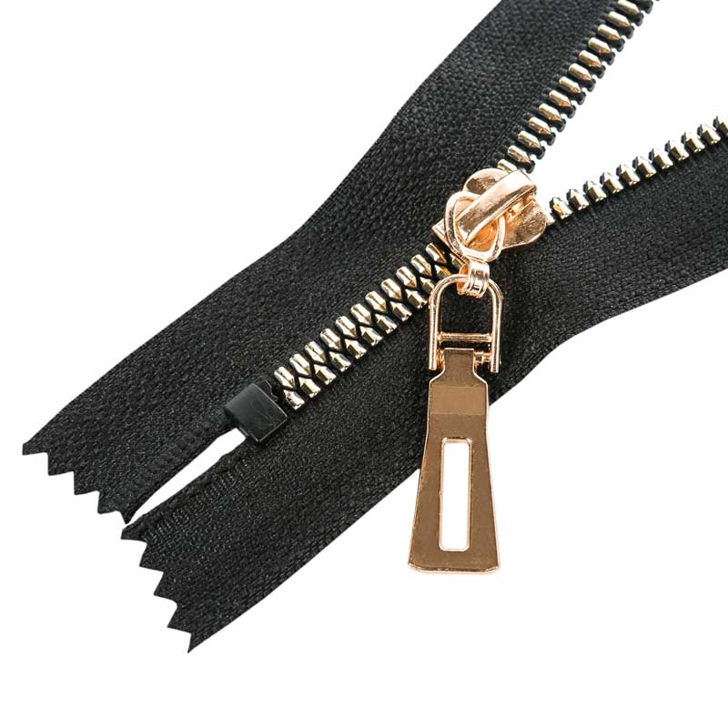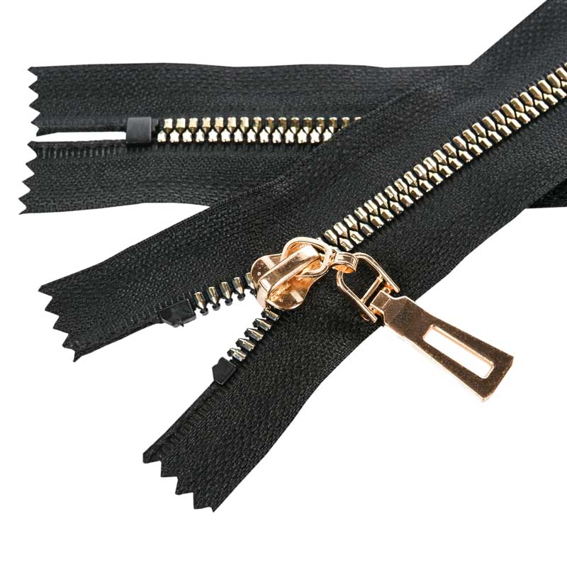 Nagyon esztétikus, arany színű polírozott műanyag fogazattal rendelkező cipzár. A különleges fogazat 5 mm széles, a hordozószalag teljes szélessége 3,5 cm. Attraktív cipzár, így a legnagyobb esztétikai elvárásoknak is megfelel. A cipzárszalag színe fekete (332). Zárt kivitel, tehát nem bontható a cipzár alsó része. Alkalmazható például pulóver, dzseki, kabát, blézer készítésénél. Nagyon dekoratív cipzárkocsival szerelve.