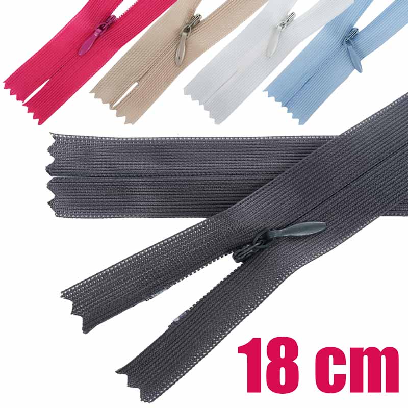 Apró műanyag spirállal rendelkezik (3 mm), vékony cipzárkocsival szerelve. Hossz: 18 cm
