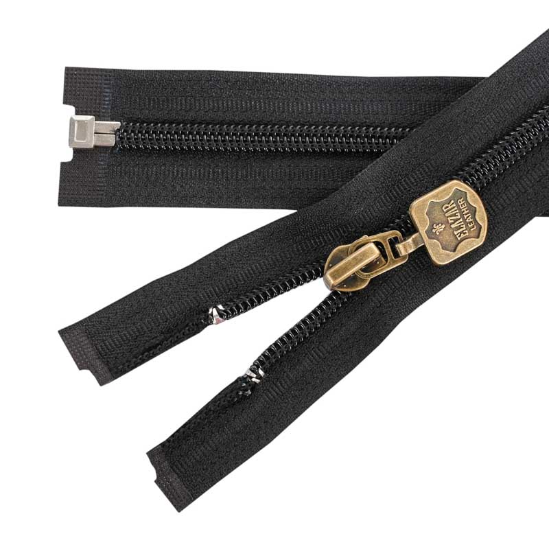 Műanyag spirállal rendelkező bontható cipzár. A spirál szélessége 5 mm, a cipzárszalag teljes szélessége pedig 3 cm. A műanyag spirál és a textilszalag színe megegyezik. A cipzárkocsi antik arany színű, E3 típus, fémből készült, és autolock funkcióval van ellátva, így nem tud kinyílni véletlenül a cipzár. Alkalmas például ruházati cikkek, kabátok, dzsekik, pulóverek, munkaruházat készítésénél és javításánál.